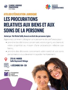 Atelier en français – Comprendre les procurations pour vos biens et vos soins– 4 décembre à 10h